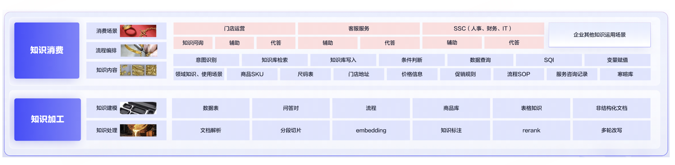 另外,服务营销场景的复杂性,往往源于海量且动态更新的业务知识——某腕表品牌仅SKU就超过10000个,相邻型号的差异可能仅在细微参数之间。为此,网易云商打造了全链路知识引擎,实现从“知识接收”到“知识应用”的闭环管理: